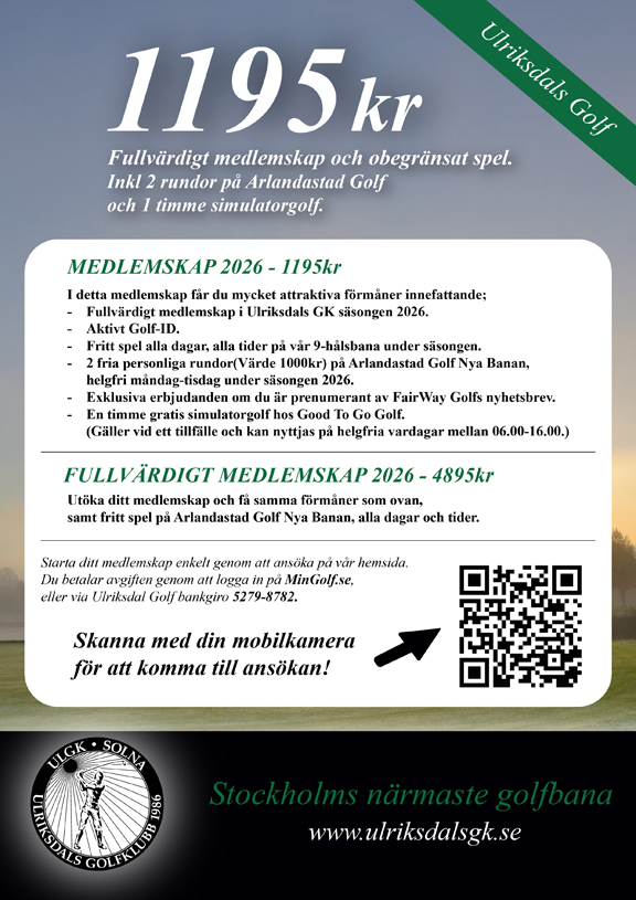 - Fullvärdigt medlemskap i Ulriksdals GK säsongen 2026