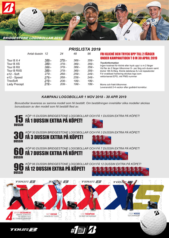 Du beställer dina Bridgestone Logobollar genom att maila din order till info@fairwaygolf.se.